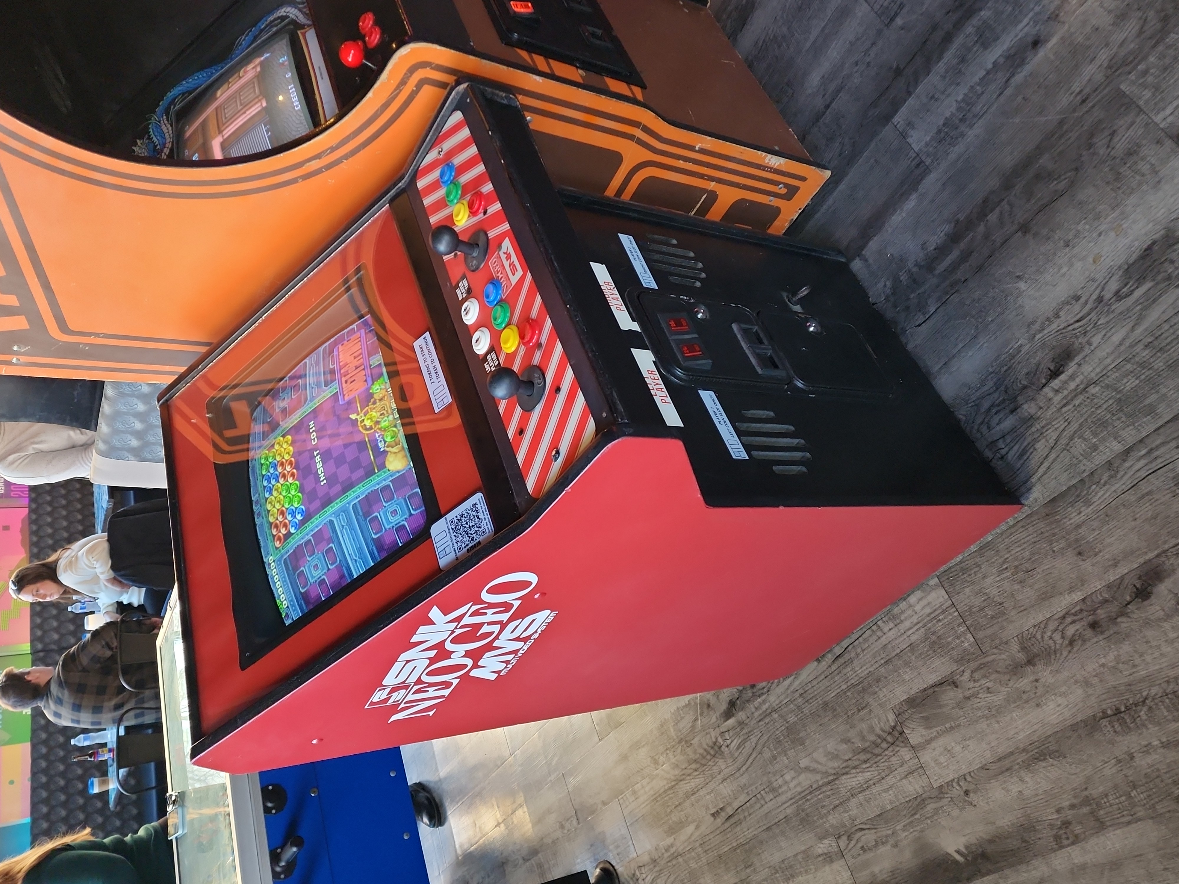 This machine is a Jaleco Lo-Pro, a low profile design with a slide-out shelf for changing games and control panels. Currently it is outfitted for Neo Geo, a system created by SNK in 1990 and supported with official games until 2004. The first game on location is Bust-A-Move, perhaps the most popular Neo Geo game of all.